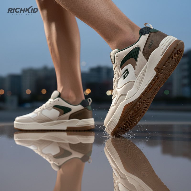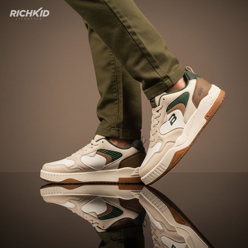 Step into all-day comfort with these premium retro-athletic sneakers, crafted for those who want style without compromising support. Designed with a modern color blend of cream, white, green, and mocha accents, this pair brings a fresh yet timeless appeal to any outfit.
