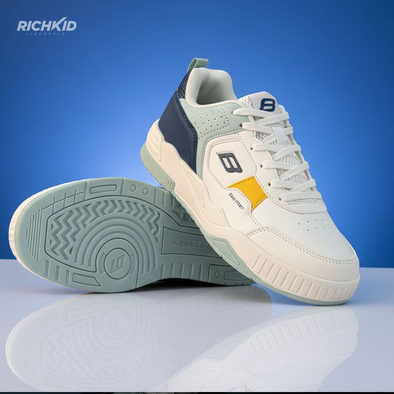 Step into all-day comfort with these premium retro-athletic sneakers, crafted for those who want style without compromising support. Designed with a modern color blend of cream, white, green, and mocha accents, this pair brings a fresh yet timeless appeal to any outfit.