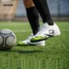 Soccer Boot is a performance-focused shoe designed for playing Football. Engineered with precision, it features snug fit, lightweight materials, and cleats or studs on the sole for superior grip and stability on different types of field. The boot’s design often includes textured uppers to enhance ball control and striking accuracy, making it an essential gear for players seeking agility, speed, and optimal performance on the field.