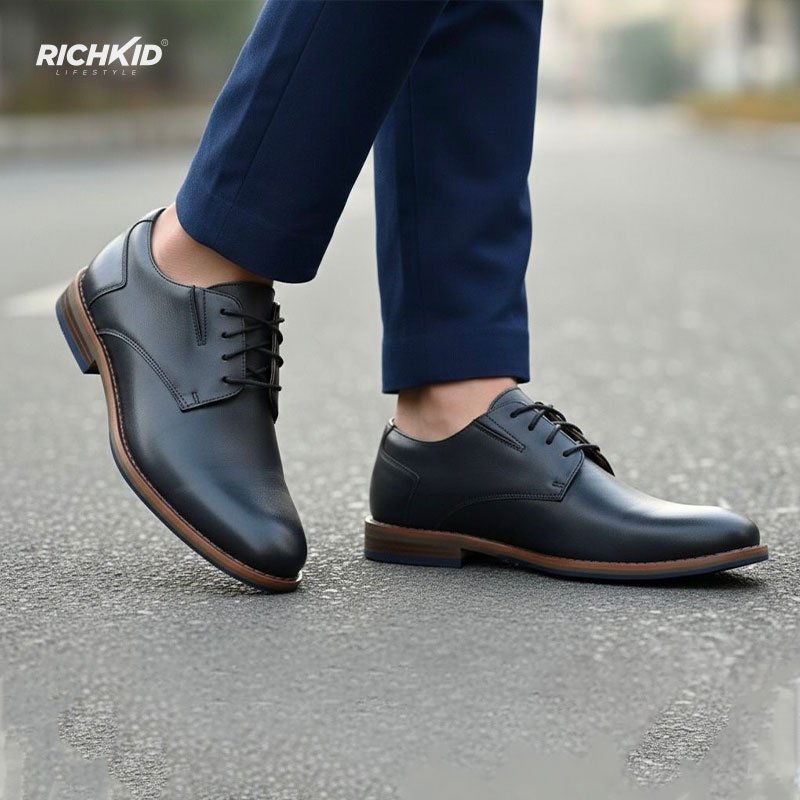 The timeless Derby lace-up design ensures a comfortable and flexible fit, while the durable rubber outsole provides excellent grip and stability for everyday wear. A polished finish and clean silhouette make this pair a versatile addition to any gentleman’s wardrobe.