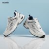 Crafted with a sleek white base accented by dynamic silver overlays and bold navy details, the Velocity Stride boasts a sophisticated yet sporty look. The durable mesh upper ensures breathability, keeping your feet cool and comfortable all day long, whether you’re navigating urban landscapes or hitting your daily stride.